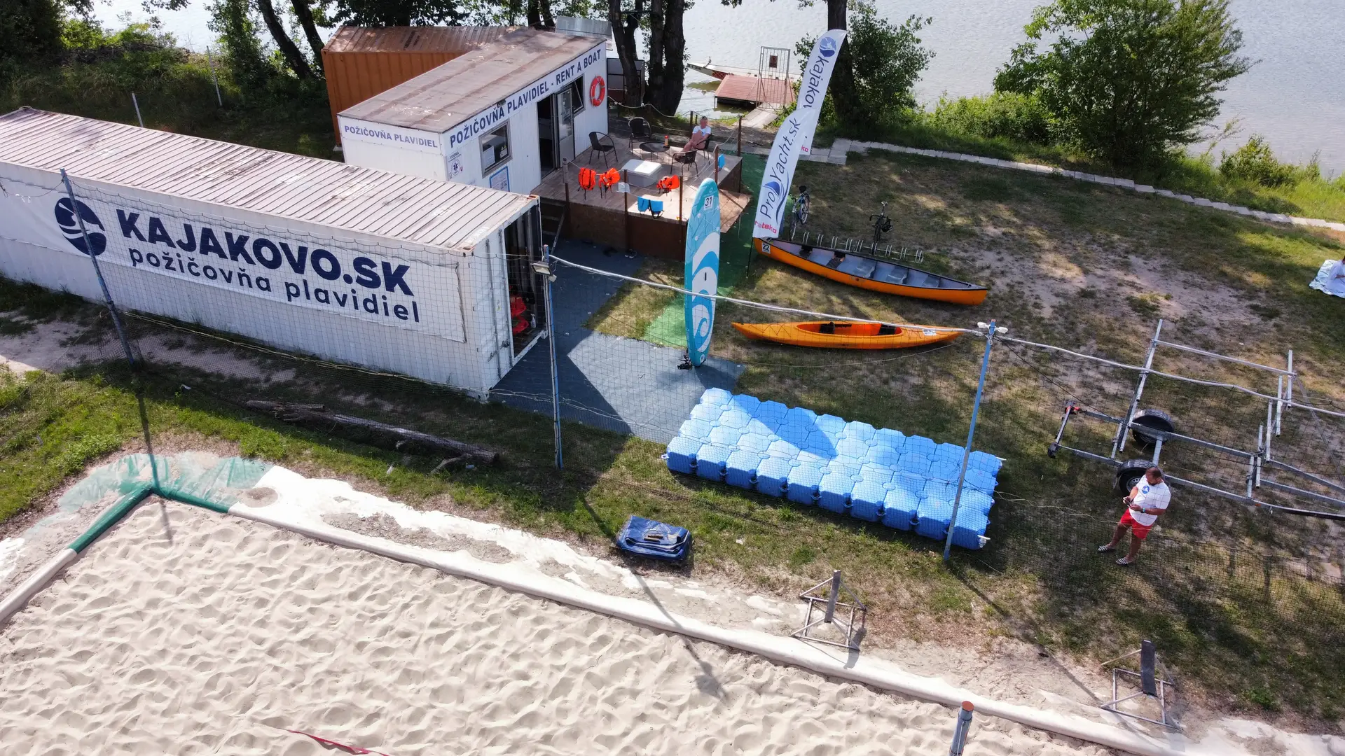 Požičovňa plavidiel sa nachádza v Trenčíne na ostrove, na pláži priamo pri rieke Váh na vodnom diele Trenčianske Biskupice.